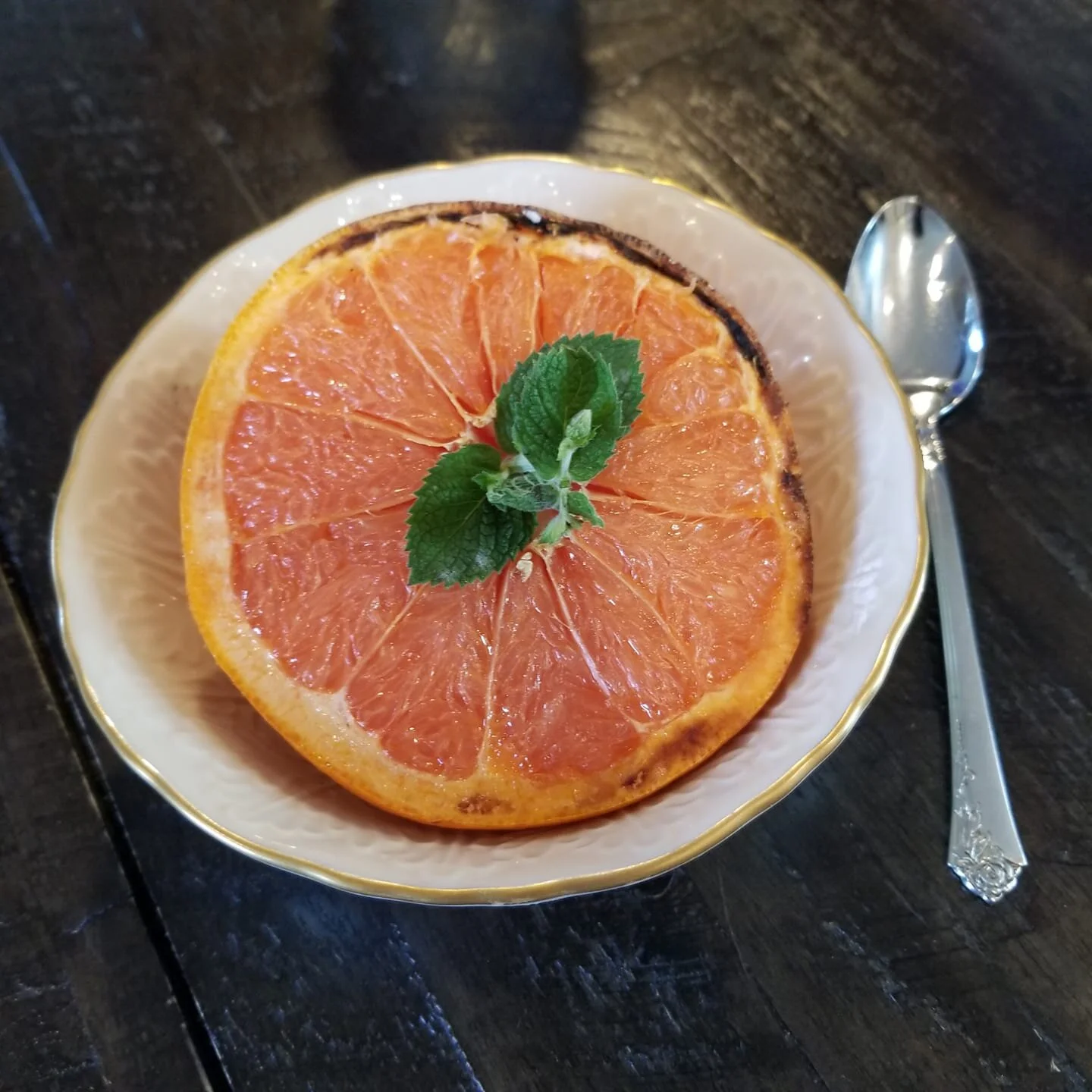 Finally, let’s serve a sweet and fruity dessert. This is so easy but so good. I call it grapefruit brulee. Halve a grapefruit and coat tops with brown sugar. Place in a preheated broiler on high for 1 to 2 minutes, until sugar is crystallized and browned. Serve it warm with another mimosa or coffee. So simple.