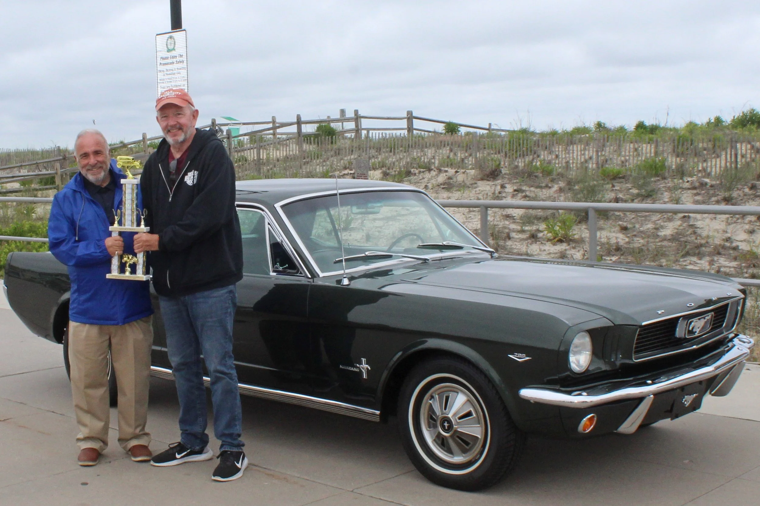 Mayor Len Desiderio presented the “Best of Show” trophy to Renee Hopkin, of South Dennis, for her maroon 1933 Pontiac four-door sedan with rear-hinged “suicide doors,” running boards, and plenty of chrome. The “Mayor’s Choice” award was presented to Steve Lynch, of Havertown, Pa., for his dark green hardtop 1966 Ford Mustang.