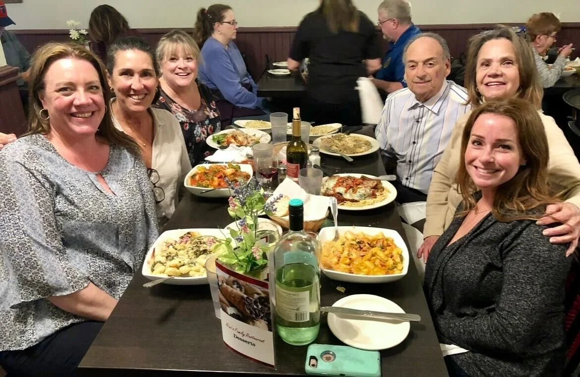 Coworkers enjoying a night out are (from left) Nicole Holt, Vicki Feeney, Denise Weinerman, Frank Edwardi Sr., Cheryl Castor, Stephanie Garreffi.