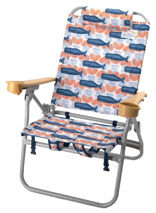 Prepare to elevate your beach experience with this stunning whale-themed backpack beach chair. Boasting a blend of 100% aluminum, upcycled ocean plastics, and premium fibers from recycled materials, this chair offers unparalleled durability and sustainability during those leisurely beach days.